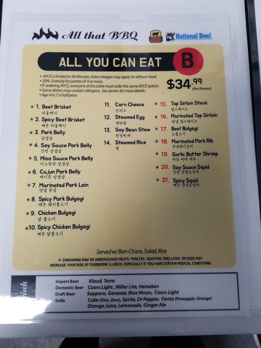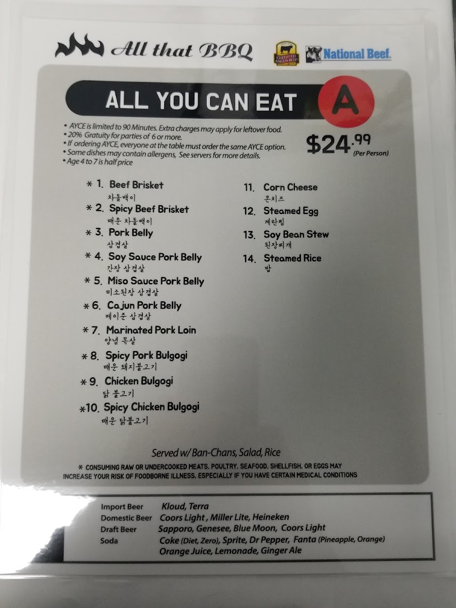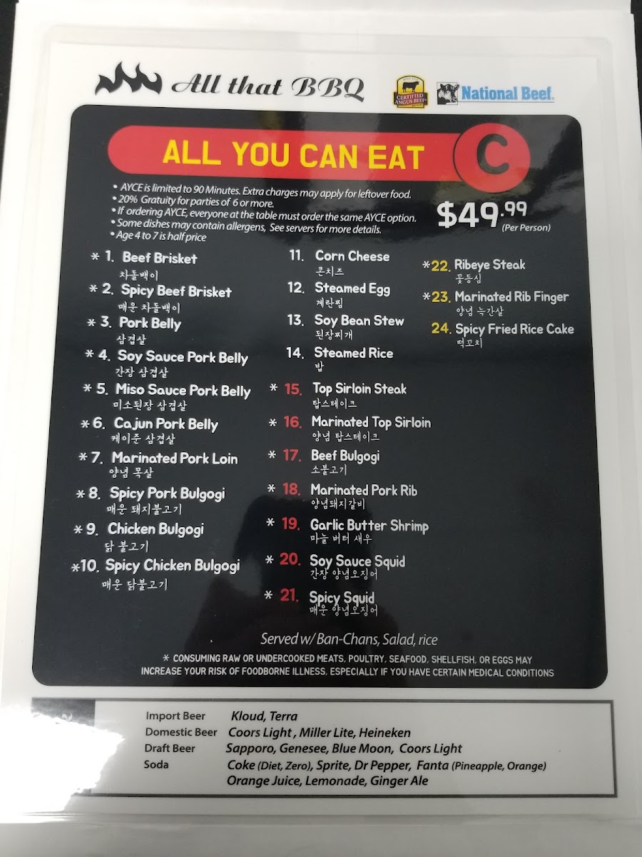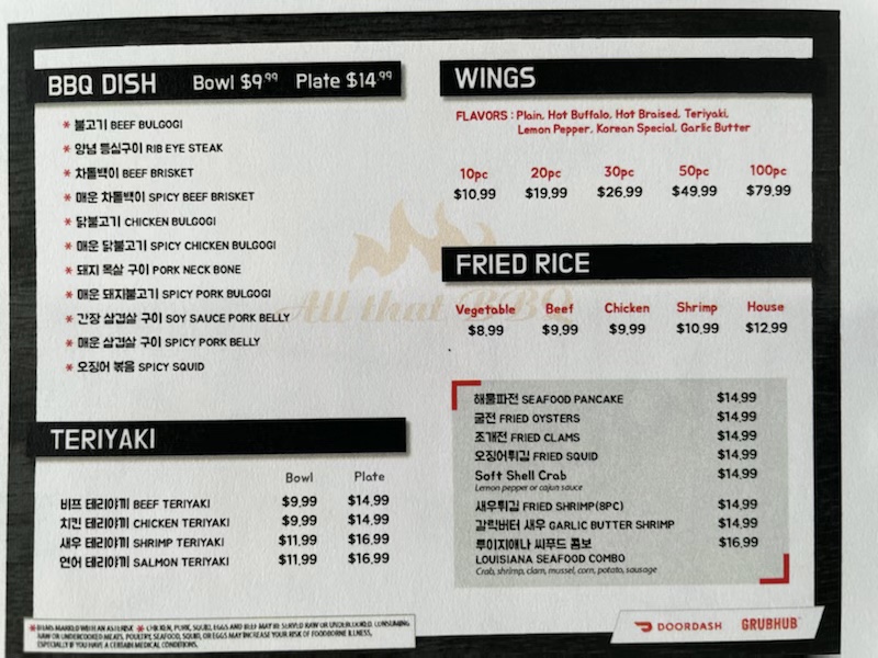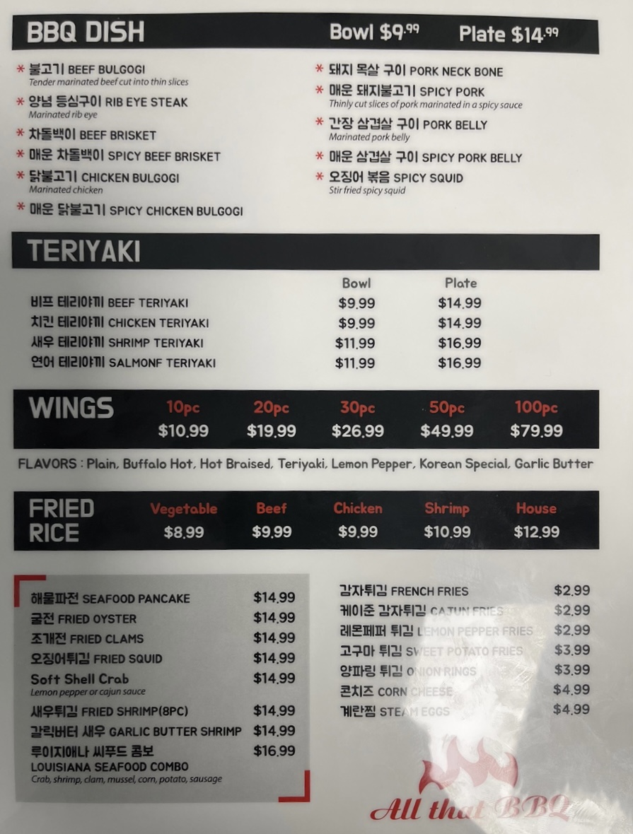 All That Korean BBQ Menu