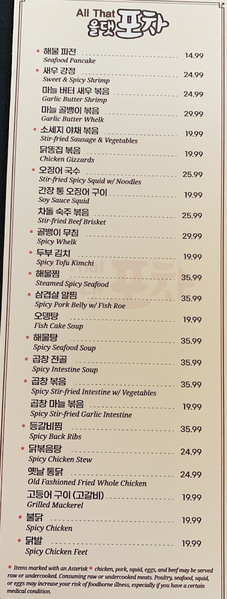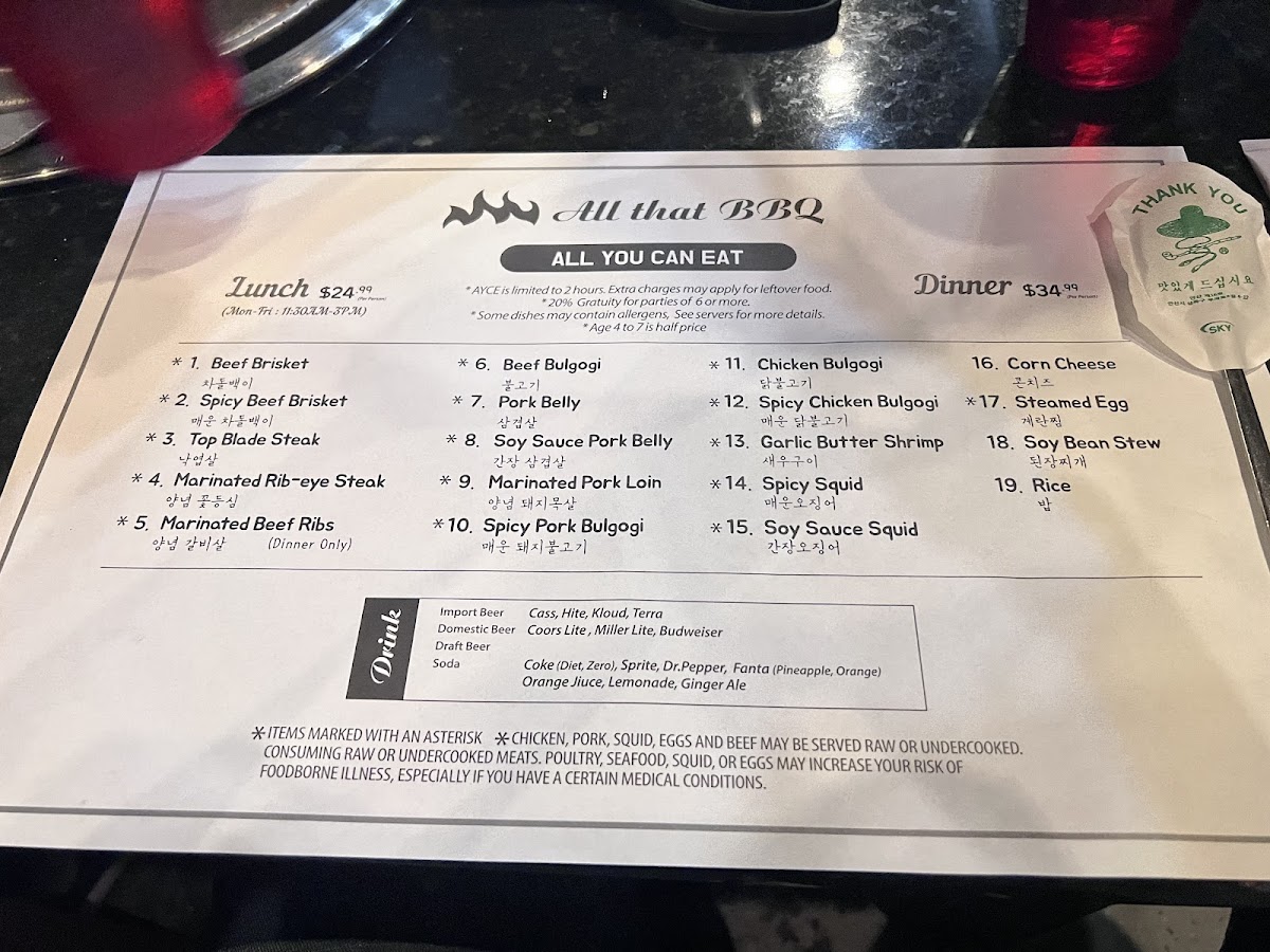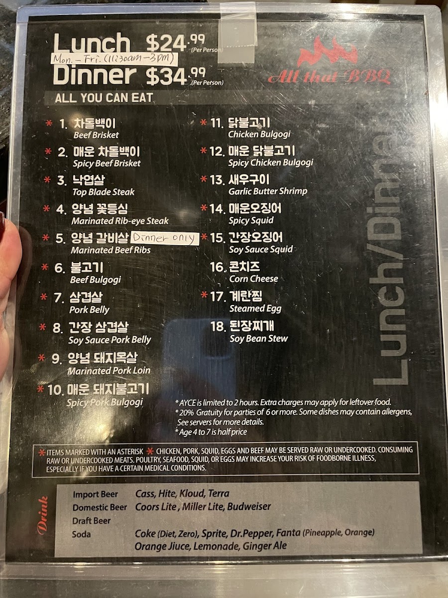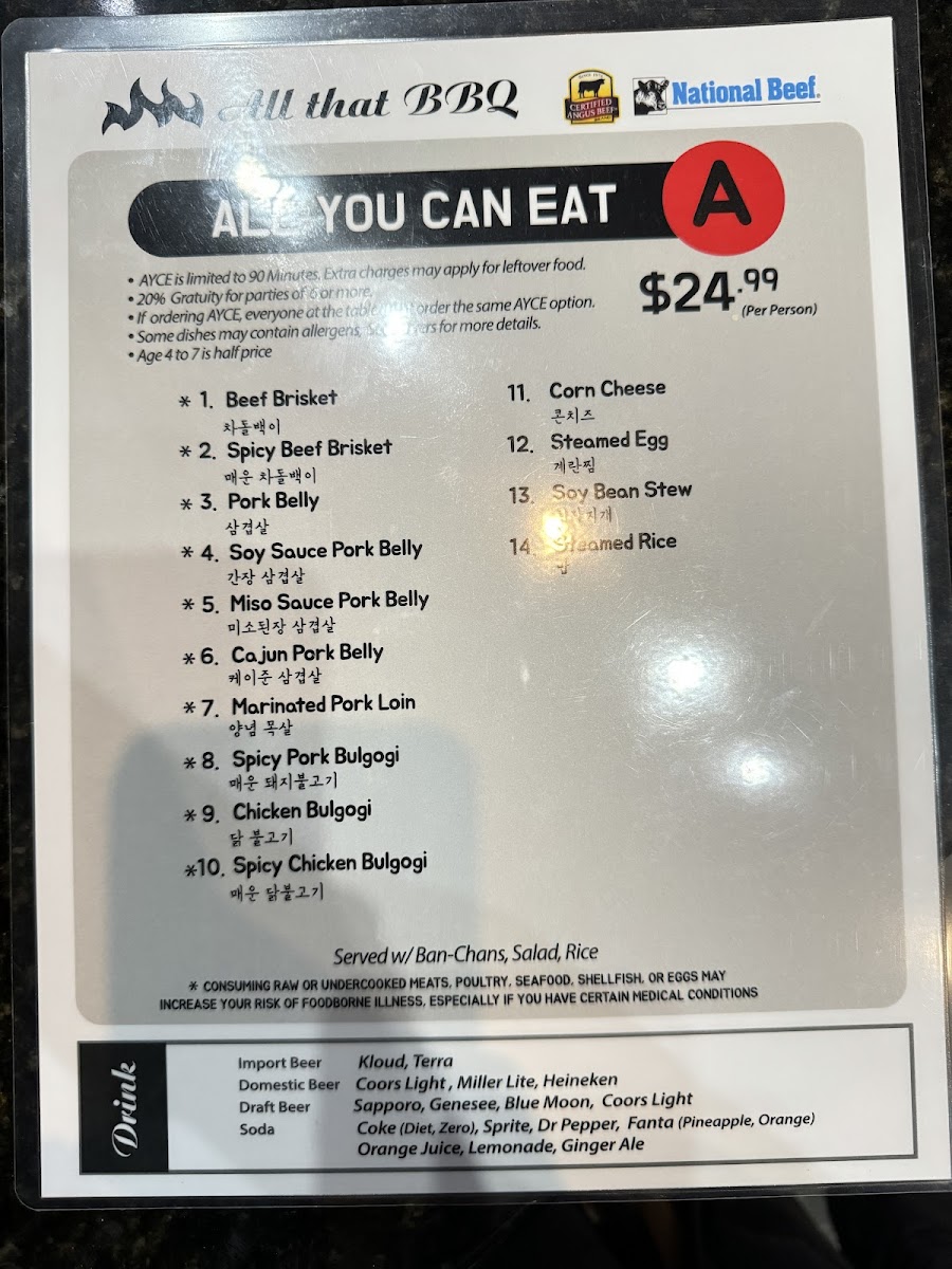 All That Korean BBQ Menu